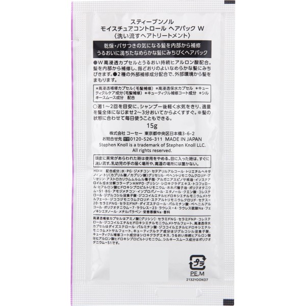 스티븐놀 모이스처컨트롤 헤어팩 W 트라이얼 15g 코세 > 스티븐 놀