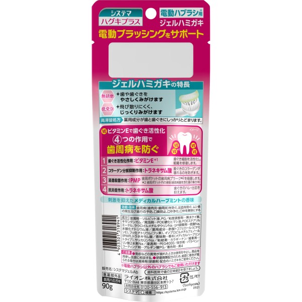시스테마 하구키플러스 젤치약 전동칫솔용 치약 90g 라이온 > 기타