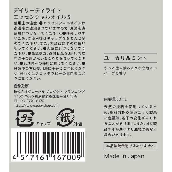 에센셜오일S 유칼립투스&민트 3ml 글로벌프로덕트플래닝 > 기타