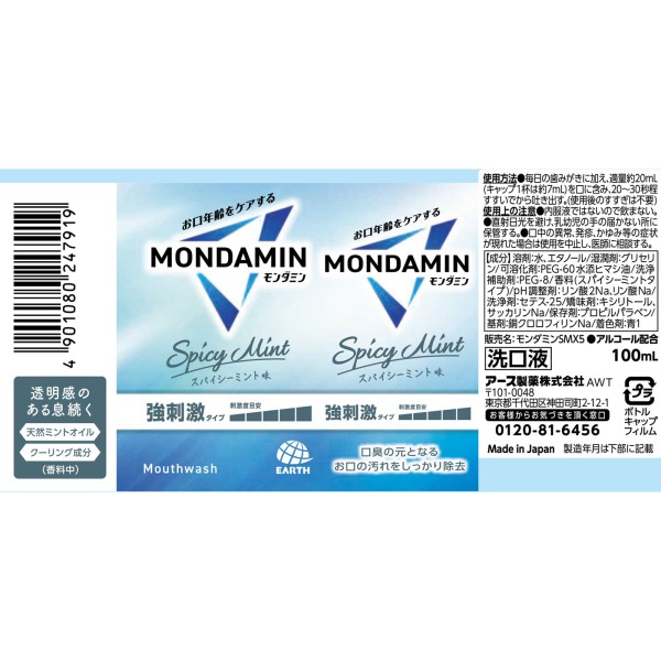 몬다민 스파이시민트 마우스워시 휴대용 미니사이즈 100ml 아스제약 > 미니