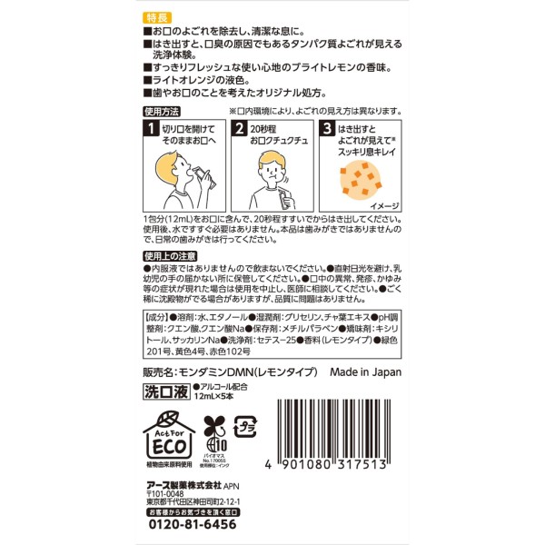 다몬 브라이트레몬 마우스워시 개별포장 휴대용 12ml×5본입 아스제약 > 구취 예방