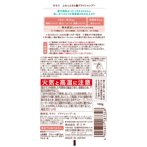 모모리 폭신하고 사라사라 드라이샴푸 100g 다리야 > 기타 드라이 샴푸