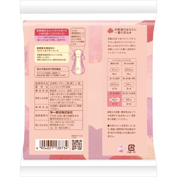 쉐리코튼 오가닉코튼 34cm 날개달린 많은날의밤용 2P 다이이치위재 > 냅킨 피부 케어 기타