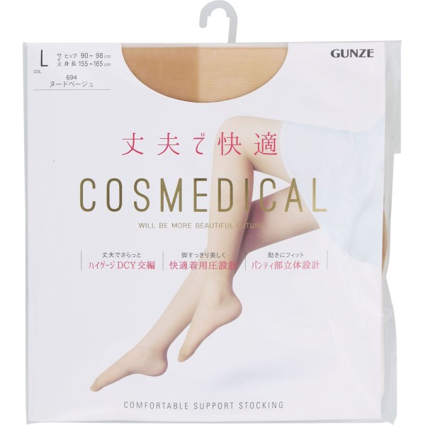 丈夫でさらっとハイゲージDCY交編、快適着用圧設計で脚すっきり美しく、パンティ部立体設計で動きにフィット、コスメディカル丈夫ストッキング