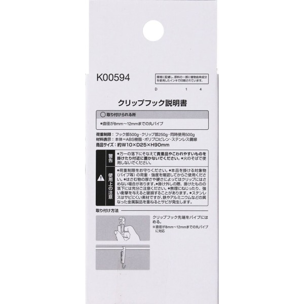 パイプに取り付けられるキッチンツールフックです。フックとクリップの2WAYタイプです。