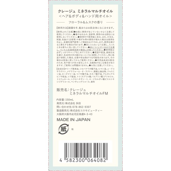 크레쥬 미네랄 멀티 오일 플로럴 & 머스크 향 150ml > 크레쥬