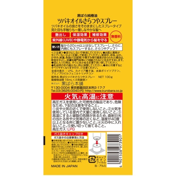 동백 오일 매끈 광택 스프레이 100g 쿠로바라혼포 > 기타 헤어 오일·리퀴드