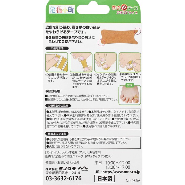 발가락 코마치 내성발톱 테이프 2WAY 타입 15매 미노우라코퍼레이션 > 기타