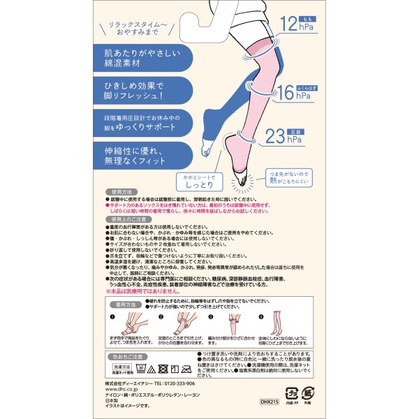 밤비나 슬림 레그 초압박 에스테 니 하이삭스 (뒤꿈치 시트 포함) 23-25cm DHC > 기능성 양말 실외 사용