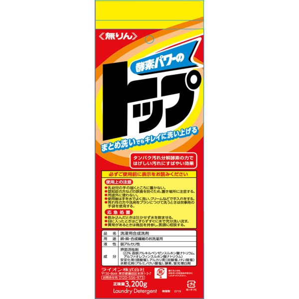 무인산 탑 세탁 세제 분말 3.2kg 라이온 > 작업복·진흙 오염