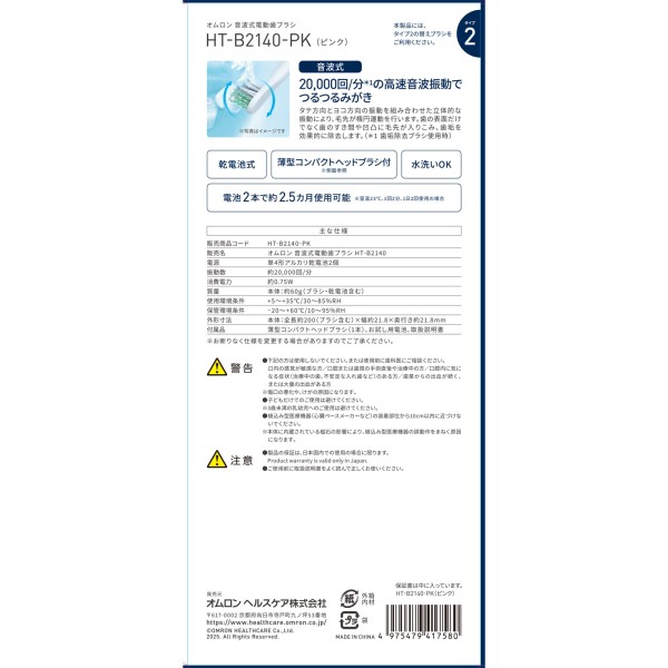 오므론 음파식 전동 칫솔 HT-B2140-PK 오므론헬스케어