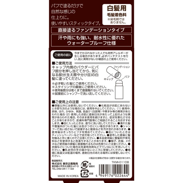 TO-PLAN 흰머리 가리기 스틱 다크 브라운 4g 도쿄기획판매 > 백발용 일시 착색료