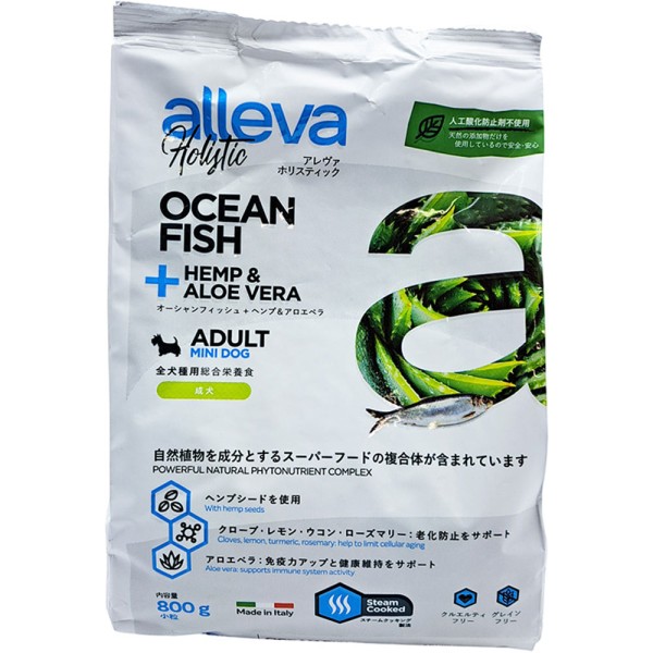 알레바 홀리스틱 피쉬 헴프시드 & 알로에베라 반려견용 소립 800g > 구르메 (성견용)