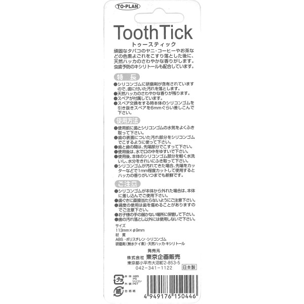 ○頑固なタバコのヤニ・コーヒーやお茶などの色素よごれをこすり落とした後に、天然ハッカのさわやかな香りがします。虫歯予防のキシリトールも配合しています。