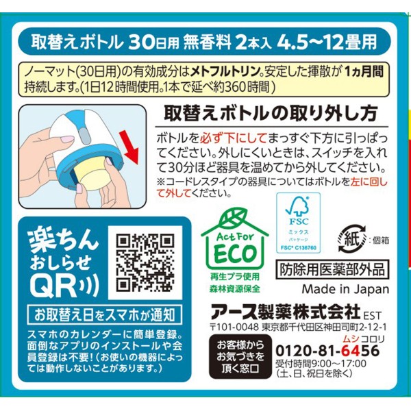 어스 노매트 교체 병 30일용 무향 액체 모기향 모기 침입 방지 살충제 2개 아스제약 > 액체 모기 퇴치 세트·교체품