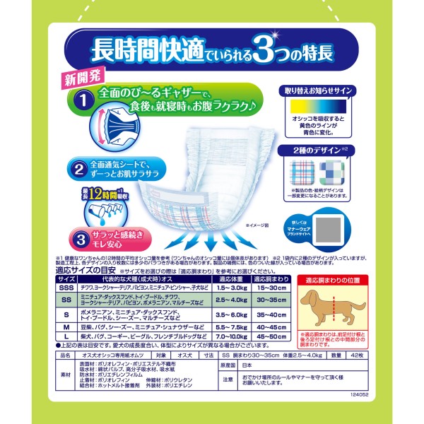 매너웨어 장시간 편안 기저귀 남아용 SS 42매 유니참 펫케어 > 개호용