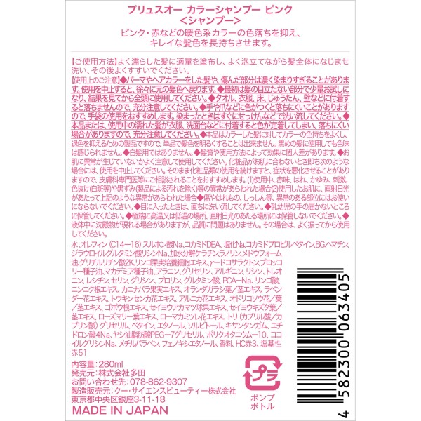플뤼소 컬러 샴푸 핑크 280ml > 흑발용 기타