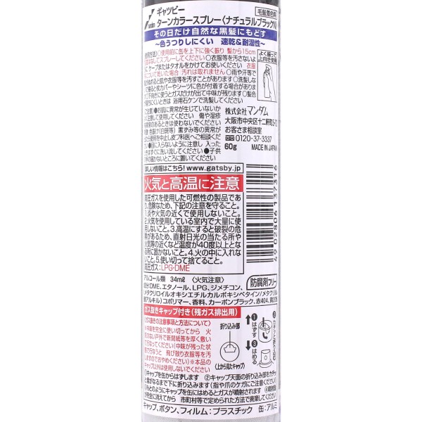 기츠비 턴 컬러 스프레이 내추럴 블랙 60g 만담 > 흑발용 남성용(흑)