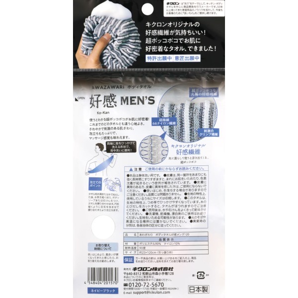 거품 결 바디 타올 남성용 120 네이비 BK 키크론 > 나일론 타월