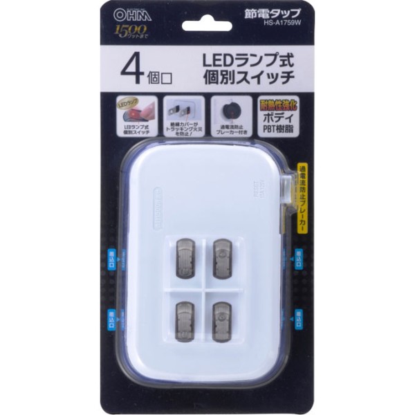 LED 개별 스위치 달린 절전 탭 4구 HS-A1759W 오므전기 > 멀티탭