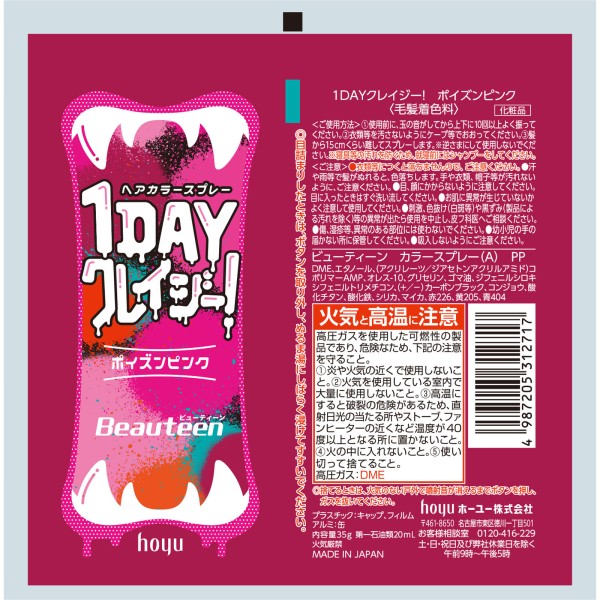 뷰틴 1DAY 크레이지! 포이즌 핑크 호유 > 흑발용 일시 착색료