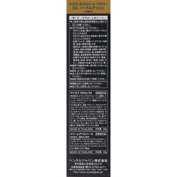 사이오스 올레오 크림 헤어 컬러 3A 노블 애쉬 50g+50g 헨켈재팬 > 백발용 액상