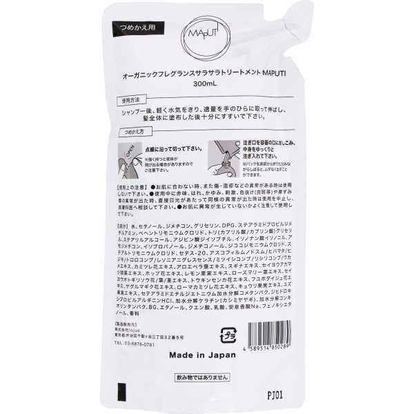 오가닉 프래그런스 매끈 트리트먼트 MAPUTI 리필 300ml lojus