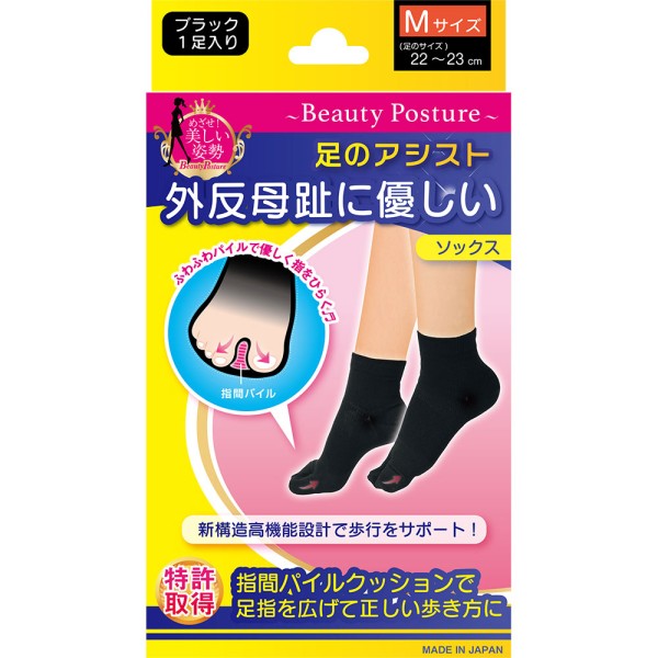 발의 어시스트 외반모지에 친절한 삭스 M 블랙 22-23cm 2매입 테루코퍼레이션 > 기능성 양말 고부가가치