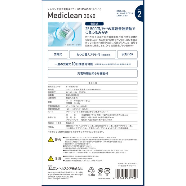 오므론 음파식 전동 칫솔 HT-B3040-W 오므론헬스케어