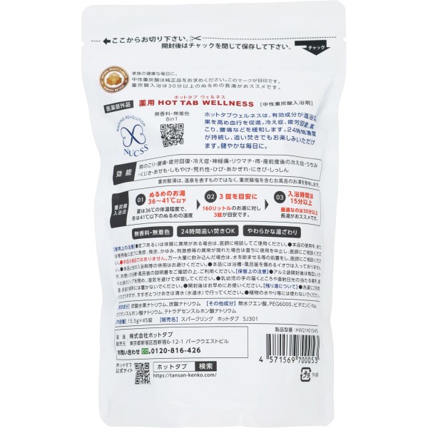 ホットタブウェルネスは、有効成分が温浴効果を高め血行を促進。