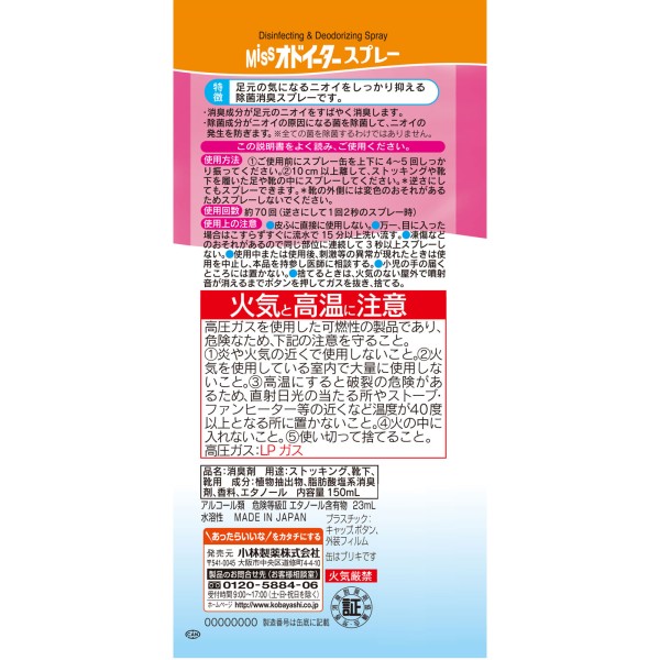 Miss 오도이터 스프레이 150ml 고바야시제약 > 제균·탈취 스프레이