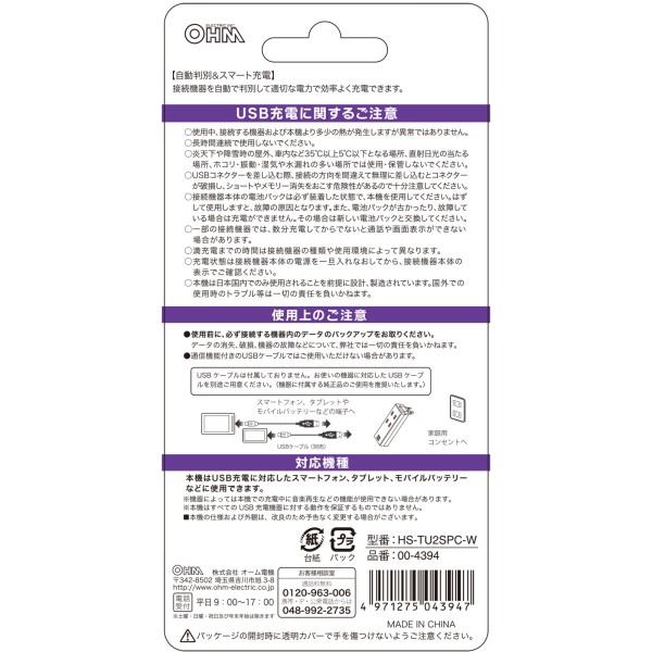 USB 포트 달린 전원 탭 2구/2USB 흰색 HS-TU2SPC-W 오므전기 > 멀티탭