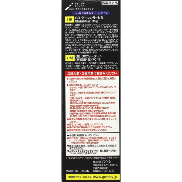 기츠비 턴 컬러 내추럴 블랙 1제 35g·2제 70ml 만담 > 흑발용 남성용(흑)