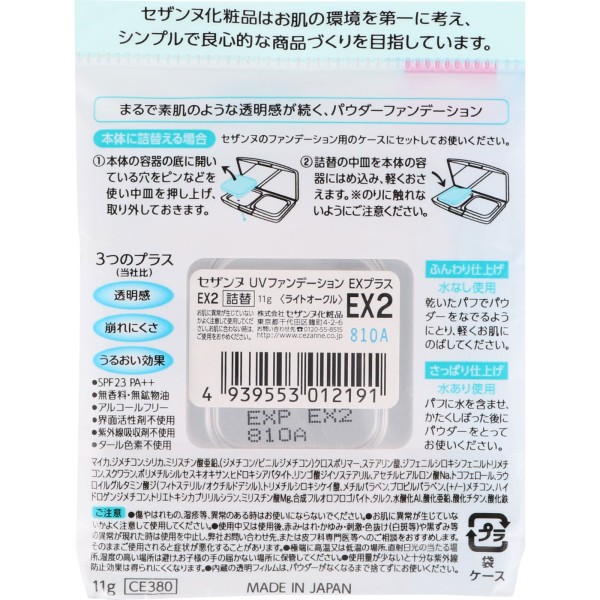 UV 파운데이션 EX플러스 리필 EX2 라이트 오크르 세잔느화장품 > 피부 메이크업