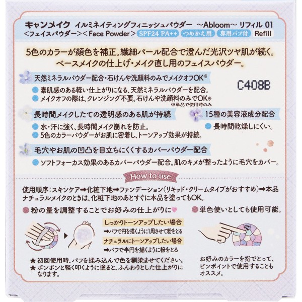 캔메이크 일루미네이팅 피니쉬 파우더 ~Abloom~ 리필 01 이다라보라토리즈 > 피부 메이크업