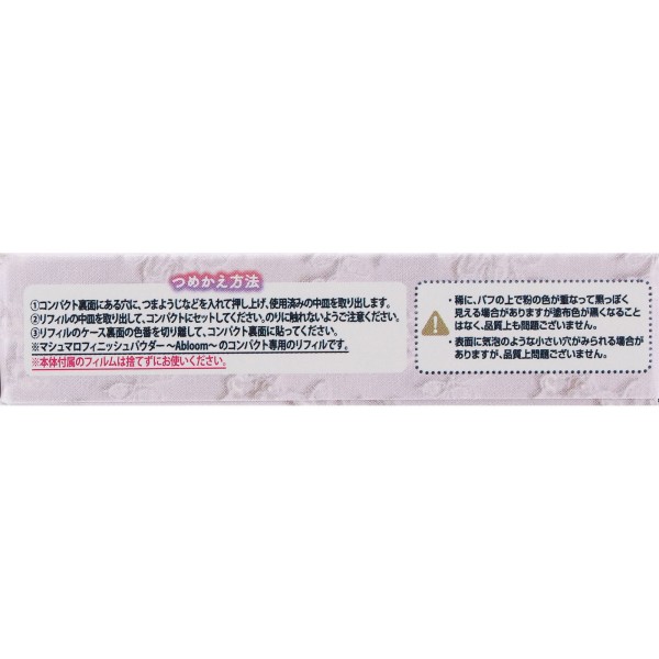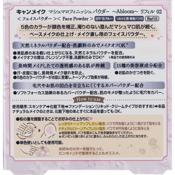 5色のカラーで顔色をトーンアップし、長時間「濁りのない澄んだマシュマロ肌」が続く”マシュマロフィニッシュパウダー ~Abloom~ 02”のつめ替え用リフィルです。