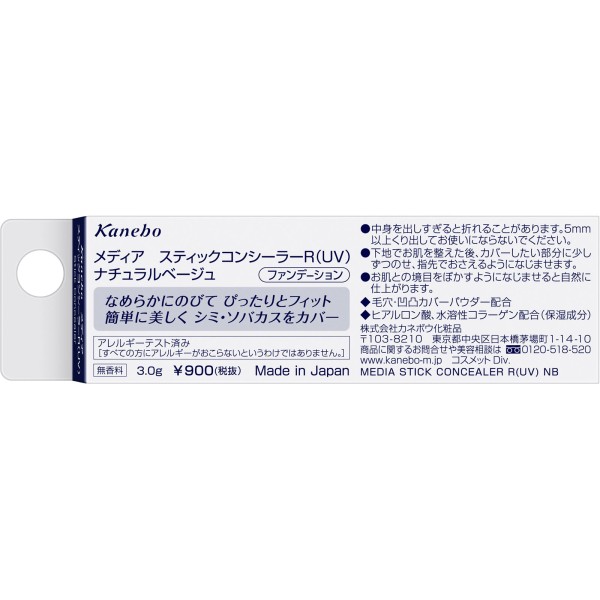 미디어 스틱 컨실러 R (UV) 내추럴 베이지 3g 가네보 > 피부 메이크업