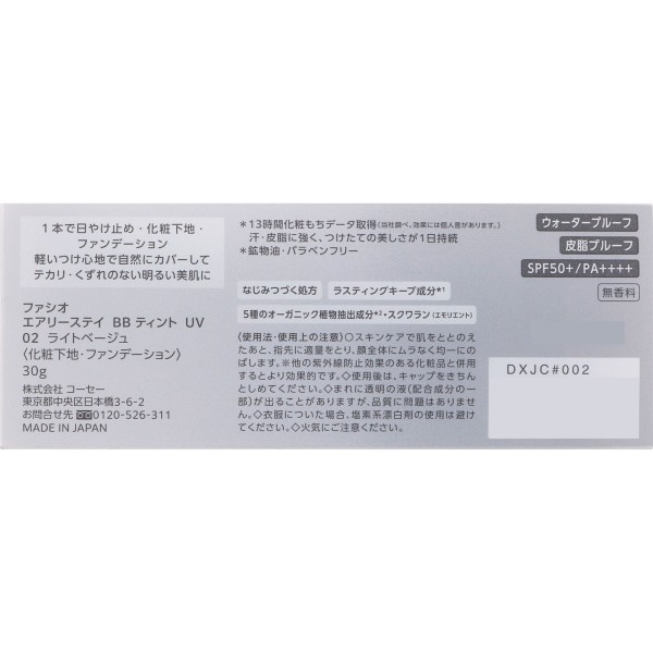 파시오 에어리 스테이 BB 틴트 UV 02 라이트 베이지 30g 코세 > 피부 메이크업