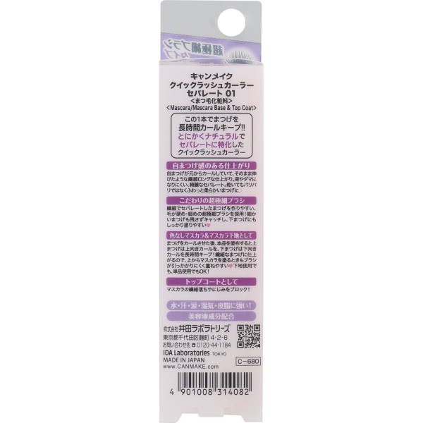 캔메이크 퀵 래쉬 컬러 세퍼레이트 01 클리어 이다라보라토리즈 > 눈 메이크업 마스카라