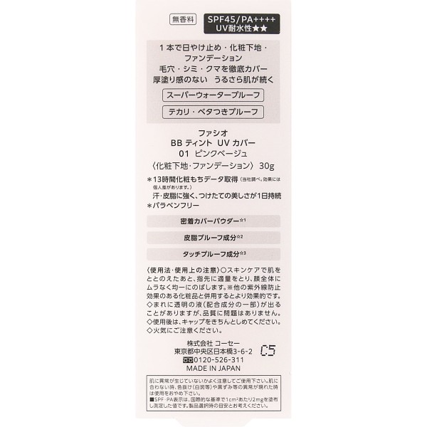 파시오 BB 틴트 UV 커버 30g 코세 > 피부 메이크업