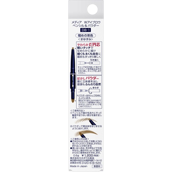 미디어 W 아이브로우 펜슬 & 파우더 어두운 갈색 DB-1 가네보 > 눈 메이크업 아이브로우