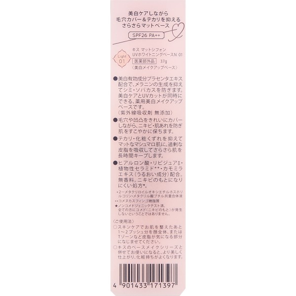 키스 매트 쉬폰 UV 화이트닝 베이스 N 01 라이트 37g 이세한 > 피부 메이크업