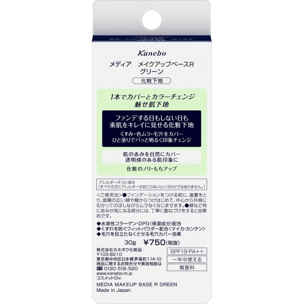 미디어 메이크업 베이스 R 그린 30g 가네보 > 피부 메이크업