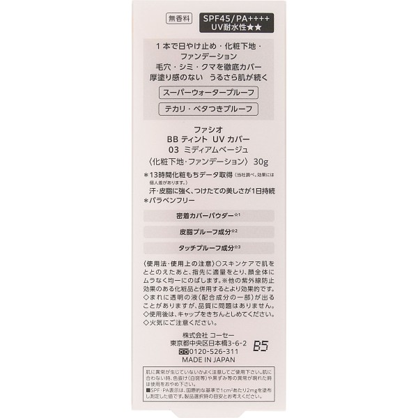 파시오 BB 틴트 UV 커버 30g 코세 > 피부 메이크업