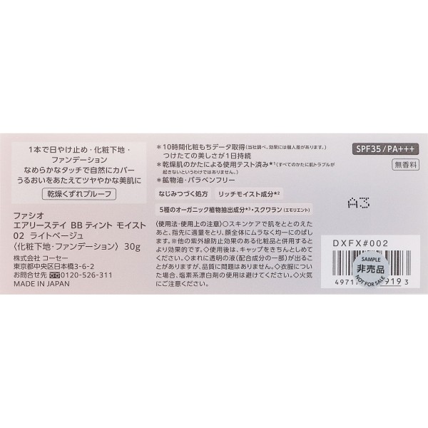 파시오 에어리 스테이 BB 틴트 모이스트 02 라이트 베이지 30g 코세 > 피부 메이크업