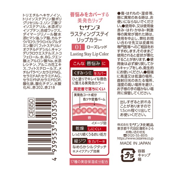 세잔느 라스팅 스테이 립 컬러 01 로즈 레드 세잔느화장품 > 입술 메이크업