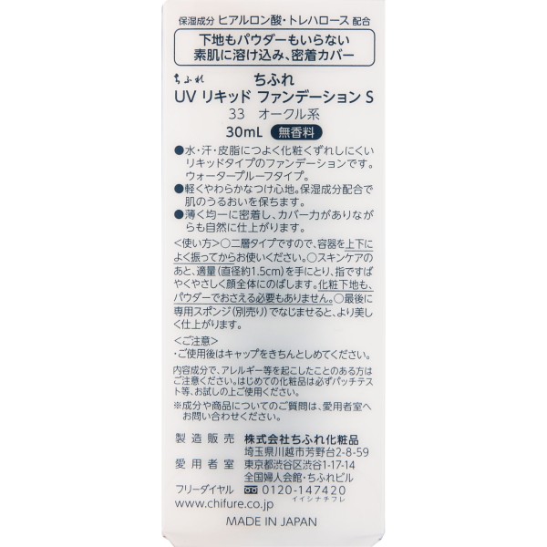 UV 리퀴드 파운데이션 S 오크르계 33 치후레화장품 > 피부 메이크업