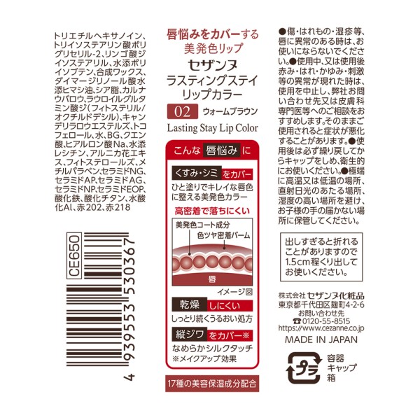 세잔느 라스팅 스테이 립 컬러 02 웜 브라운 세잔느화장품 > 입술 메이크업