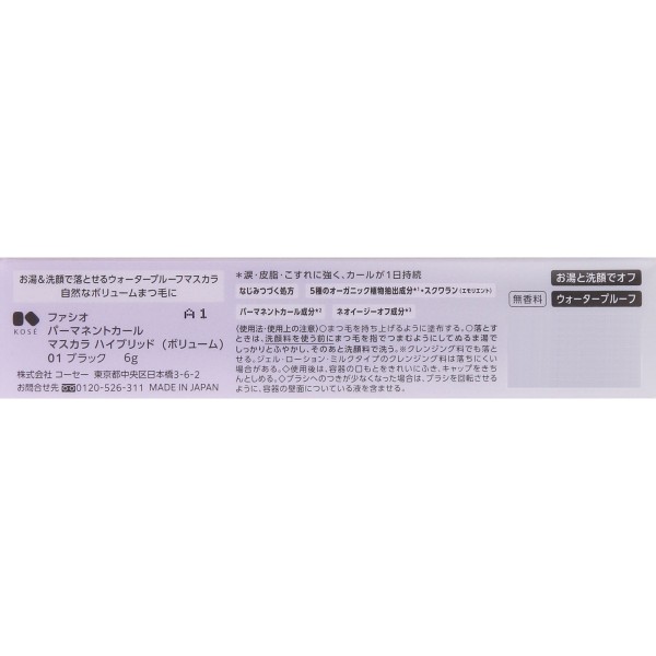 파시오 퍼머넌트 컬 마스카라 하이브리드 볼륨 01 블랙 6g 코세 > 눈 메이크업 마스카라