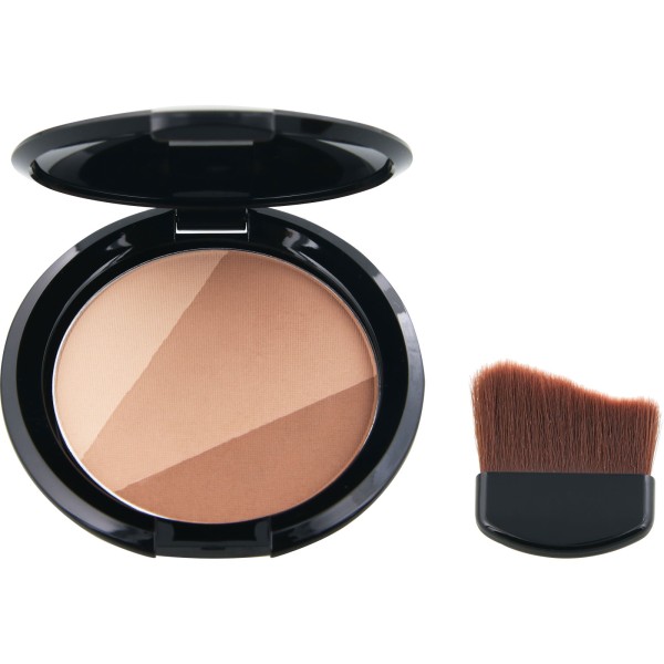 3色の陰影カラーで骨格メイク。輪郭に沿うフェイスブラシ付きで立体小顔※叶えるシェーディングパウダー。※メイク効果による。